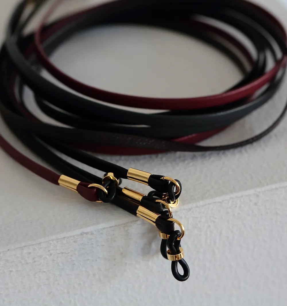 ジャパンカウレザーを使った、シンプルで高級感のあるグラスコード。