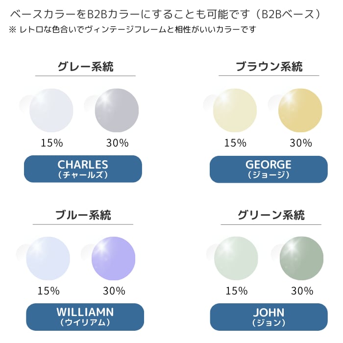 ・ベースがグレー系、ブルー系 → 調光後もグレー系の発色