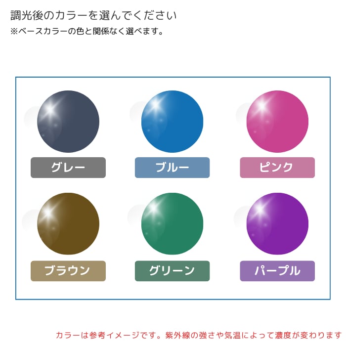 通常、調光レンズはベースカラーをクリアカラーや同系色にすることしか出来ませんでした。