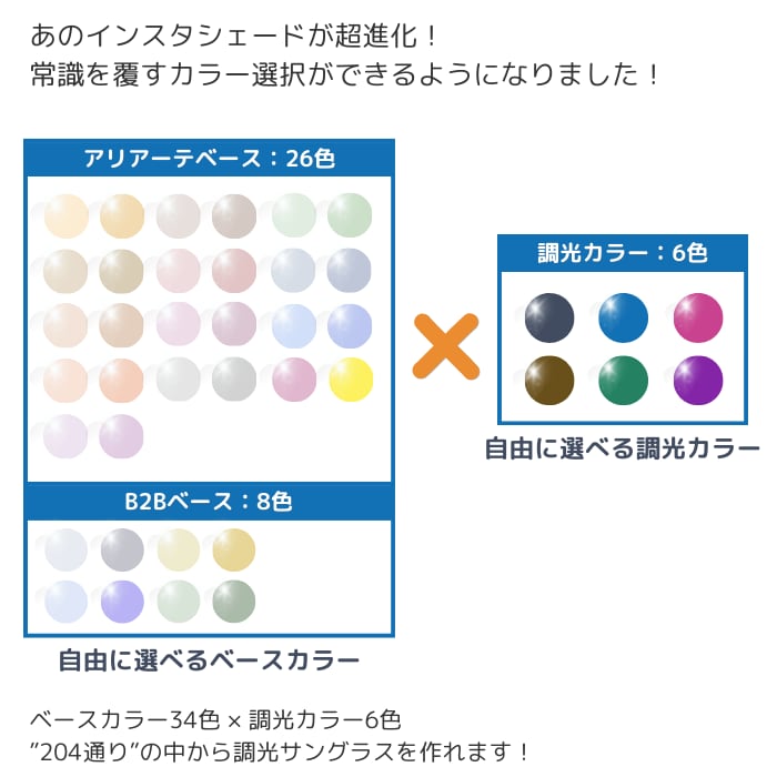 「ベースカラー34色 × 調光カラー6色 = 204通り」