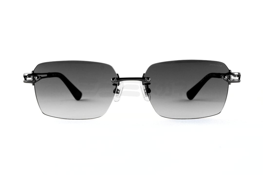 鋭いスクエアレンズにフチなしの構造を合わせた、ポリスらしい強さのあるモデル。
