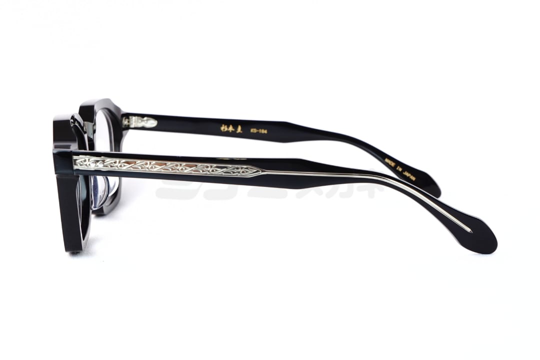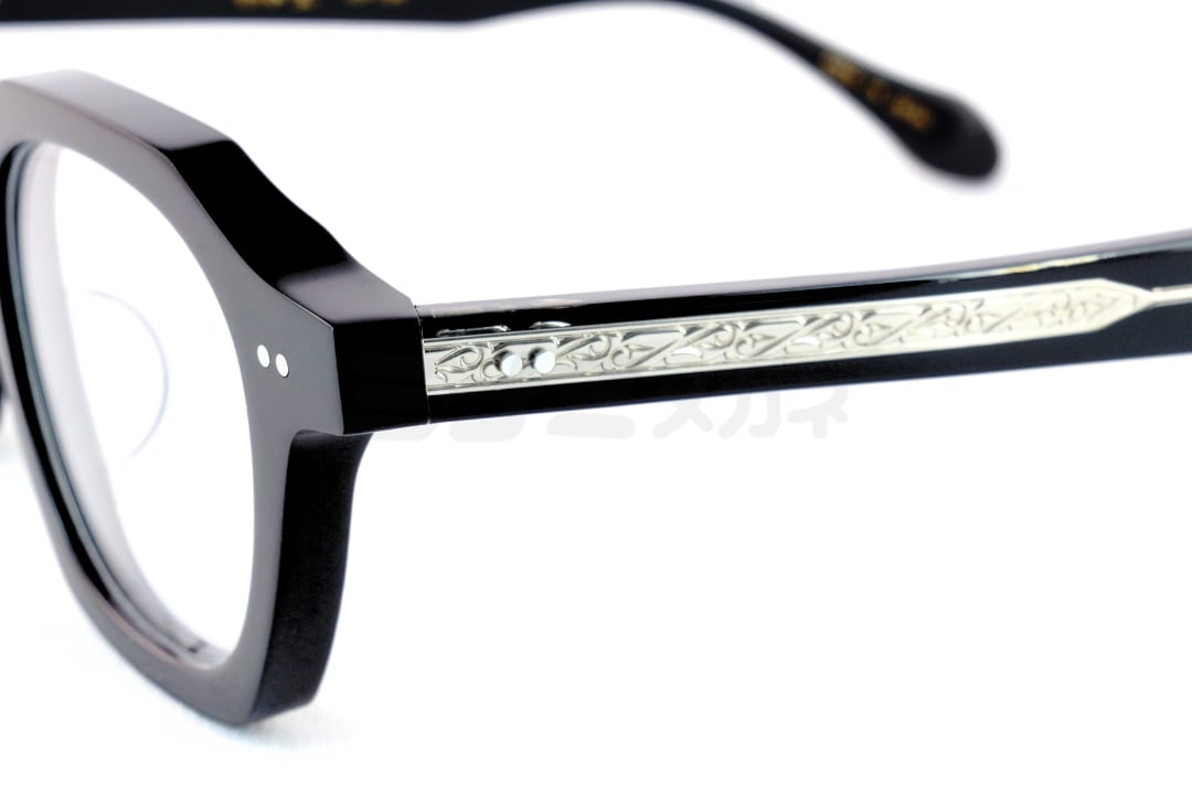 一方、テンプル部分には杉本圭らしい彫金を施した芯金が組み込まれており、横顔にさりげない奥行きと職人技の美しさを添えています。