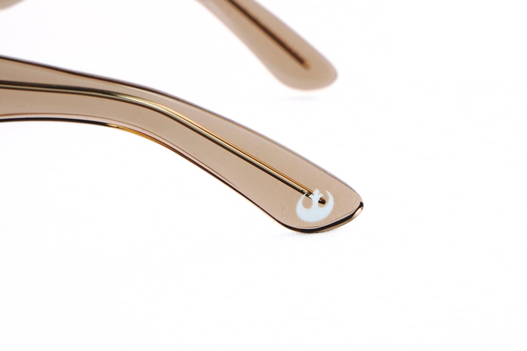 透明感のあるライトブラウンのフレームにブラウンレンズを組み合わせ、希望と抵抗の象徴である反乱軍の輝きを表現。