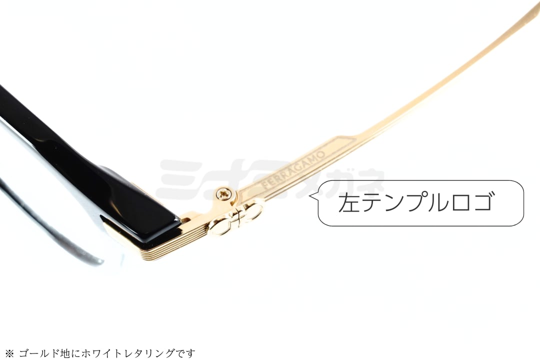 テンプルには、フェラガモのブランドロゴでもある「ガンチーニ」デザインをさりげなく取り入れています。