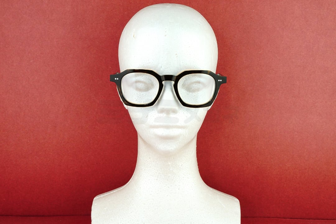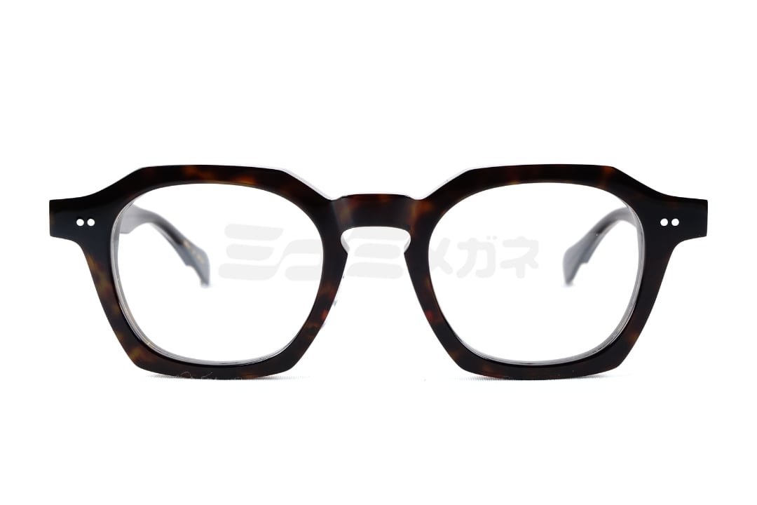 無骨さと品格を併せ持つ存在感のある多角形シェイプが特徴のメガネフレームです。