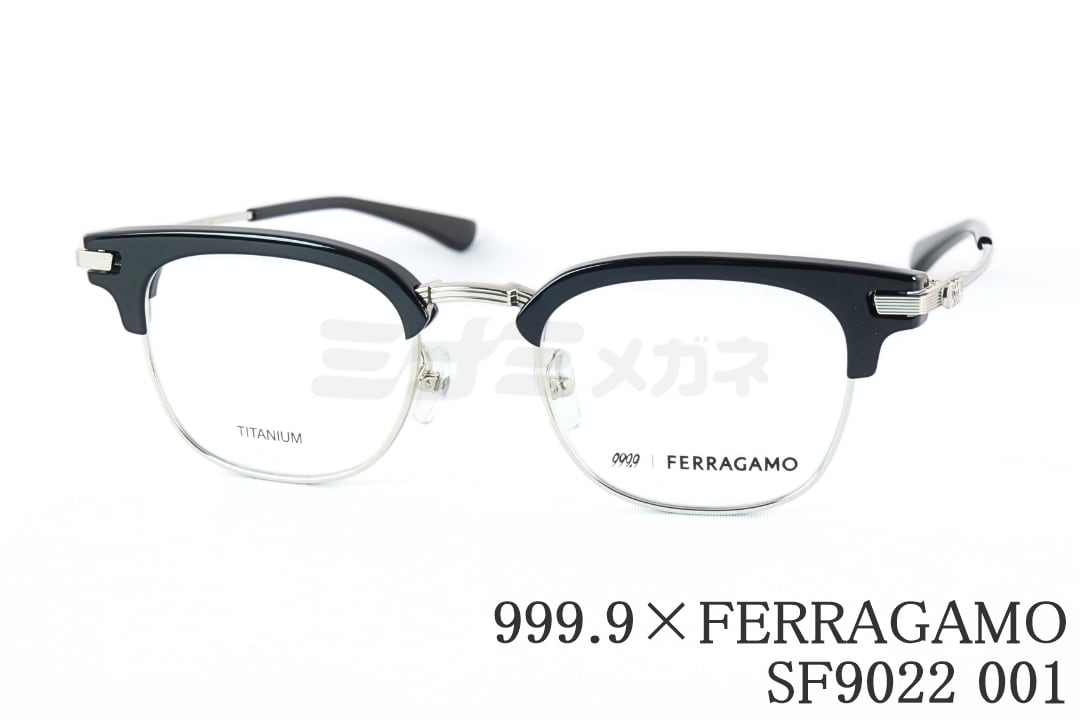 999.9×FERRAGAMO メガネ SF9022 001 サーモント ブロー ウエリントン コラボモデル アジアンフィット オシャレ ブランド フォーナインズ フェラガモ 鯖江 日本製 正規品