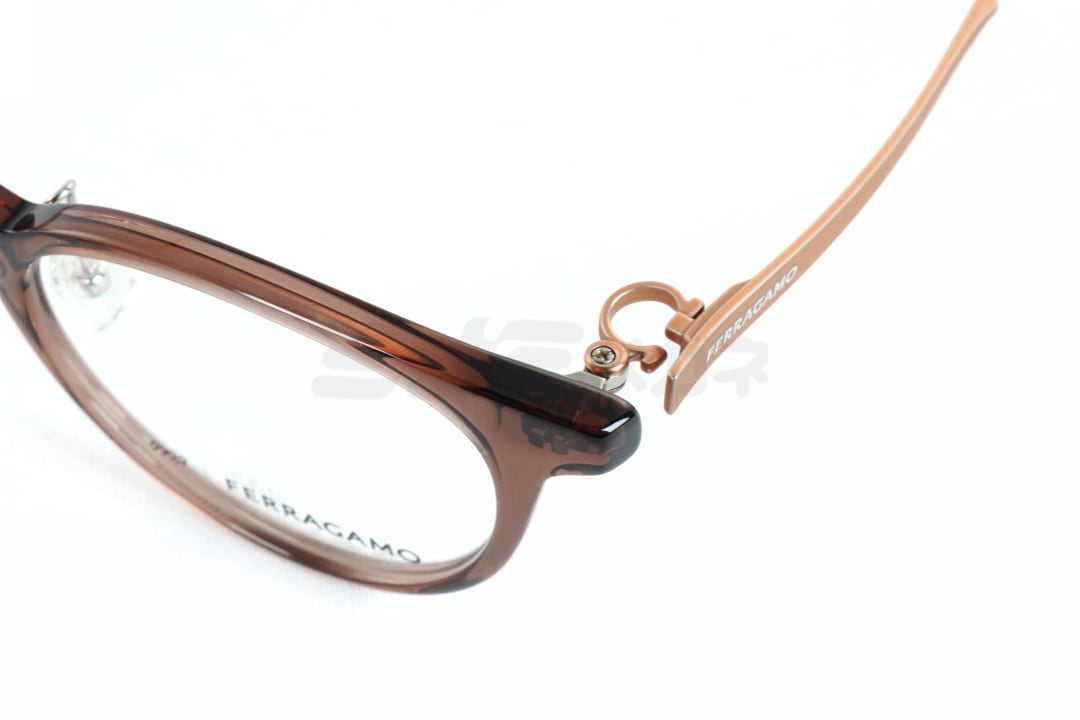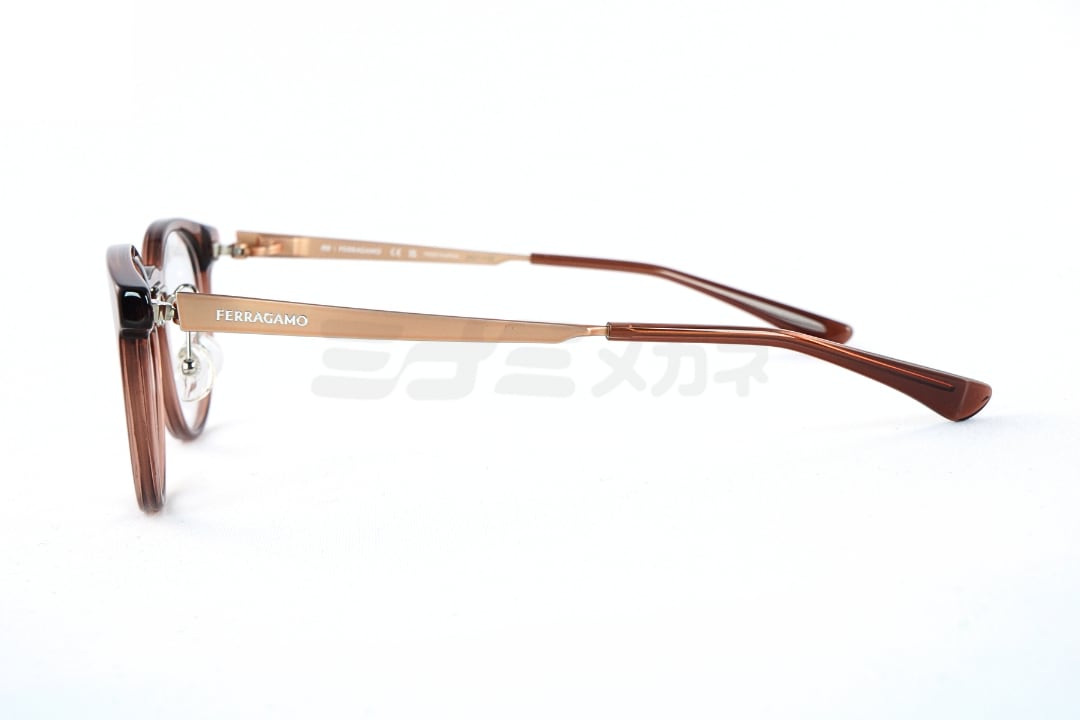 テンプルにはFERRAGAMOのロゴをあしらい、細身のメタルパーツが横顔にさりげない高級感を添えます。