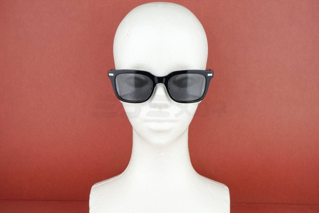 テンプルにはブランドロゴがさりげなく配置されており、シンプルな中にも上質感のある仕上がりとなっています。