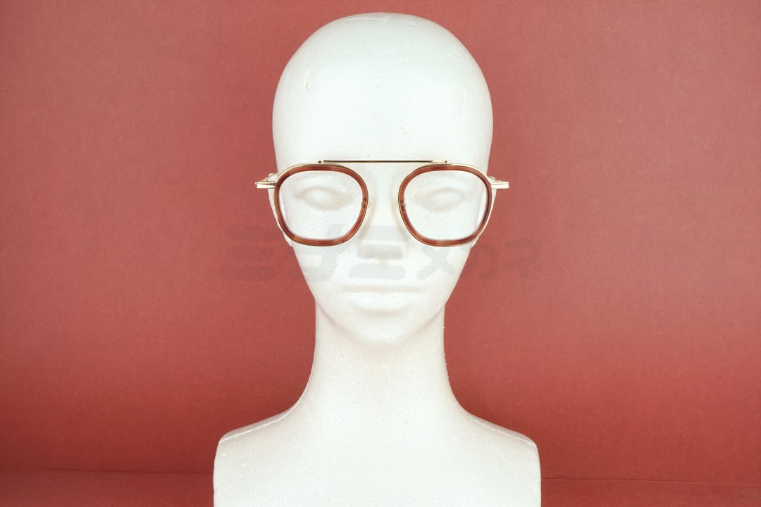 バーブリッジが特徴的な、ウエリントンシェイプのメガネ。