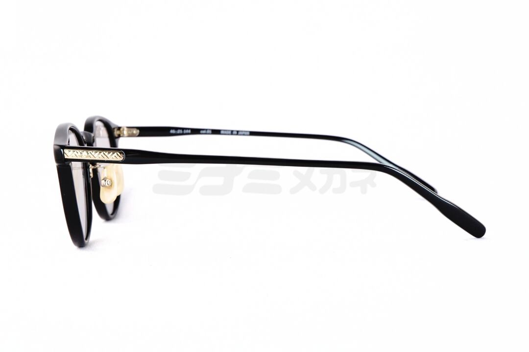 シンプルでキレイ目なデザインでありながら、ワンポイントでテンプルに伝統工芸などで用いられる網代紋様(アジロモンヨウ)の金属モチーフがあしらわれています。