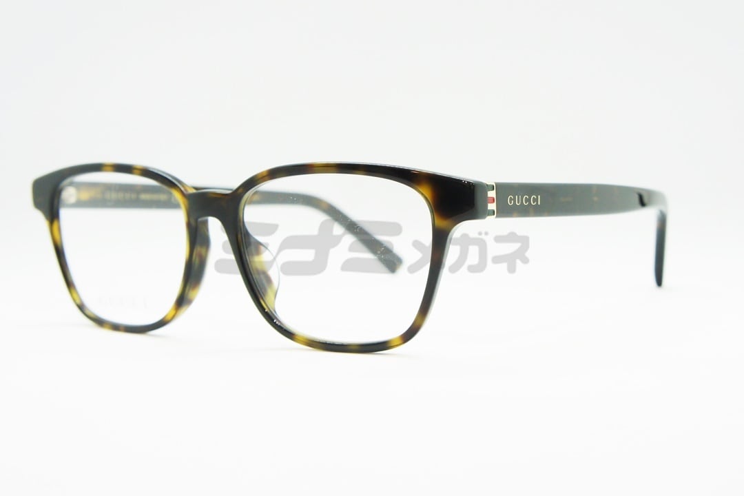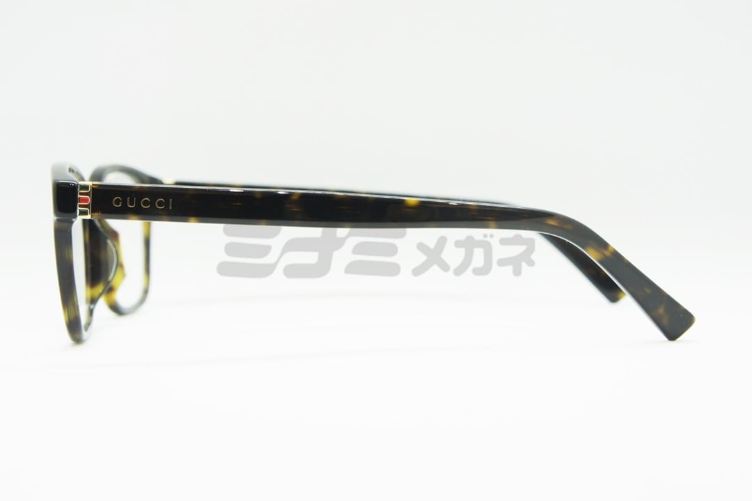 フロントとテンプルの境目にはグッチのブランドカラーがワンポイントであしらわれています。