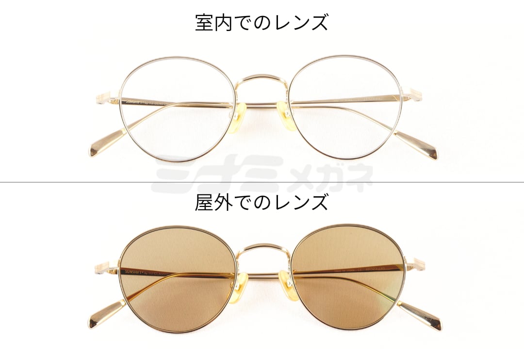 使われている調光レンズは、紫外線でレンズの色が変わるのも特徴。