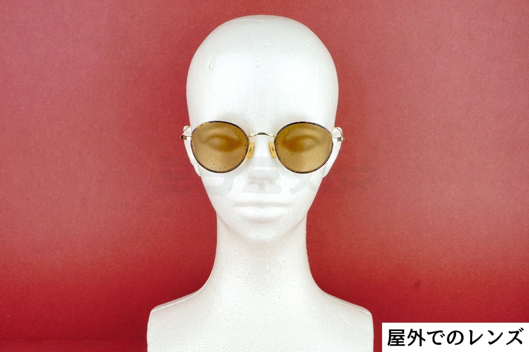 使われている調光レンズは、紫外線でレンズの色が変わるのも特徴。