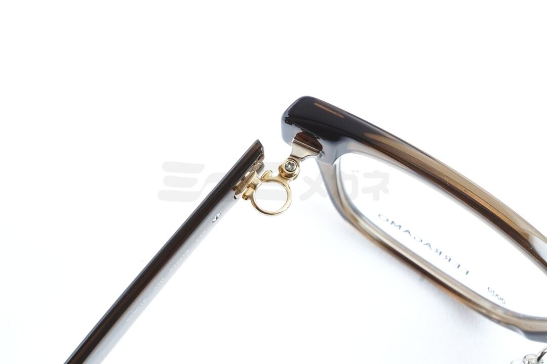 コラボフレーム最大の特徴は、999.9の「バネ式ヒンジ」にフェラガモのブランドアイコン「ガンチーニ」デザインをあわせた「ガンチーニヒンジ」。