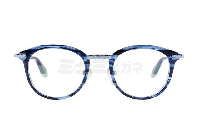 8mm厚のオリジナルアセテート生地をフロントに用い、アクセントにメタルパーツを使ったコンビネーションフレームです。