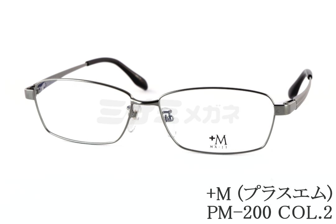 プラスエム メガネ PM-200 COL.2 スクエア +M 大きいメガネ 顔が大きい人のメガネ ビッグサイズ ラージサイズ テンプルの長さが長い
