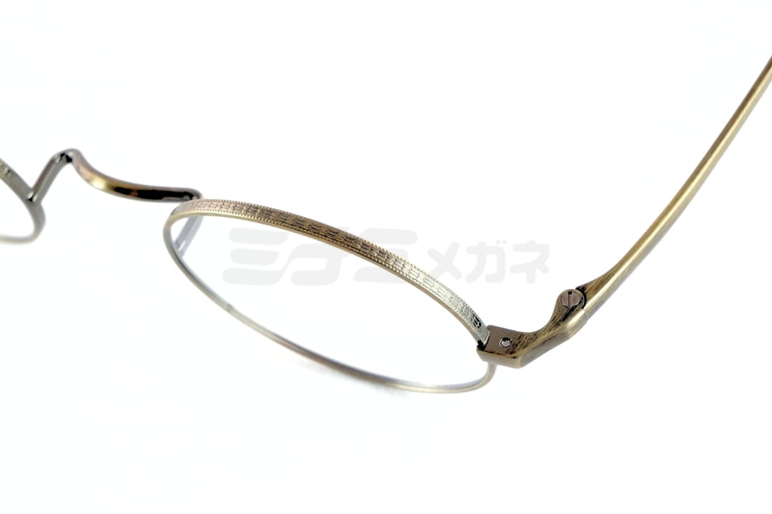 全体的にはシンプルですが、リムの周りやテンプルの側面に施された「亀」をモチーフにした彫金がクラシックな雰囲気を漂わせてくれます。