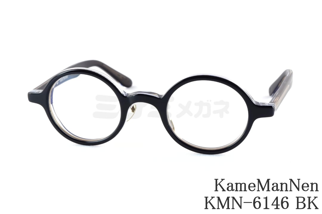 KameManNen メガネ KMN-6146 BK ラウンド 丸眼鏡 インナーメタル 太セル カメマンネン 鯖江 日本製 正規品