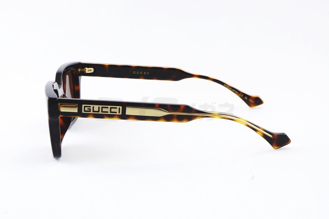顔の横にくるテンプル内部には、GUCCIのロゴが埋め込まれており、ラグジュアリーなデザインに仕上げています。